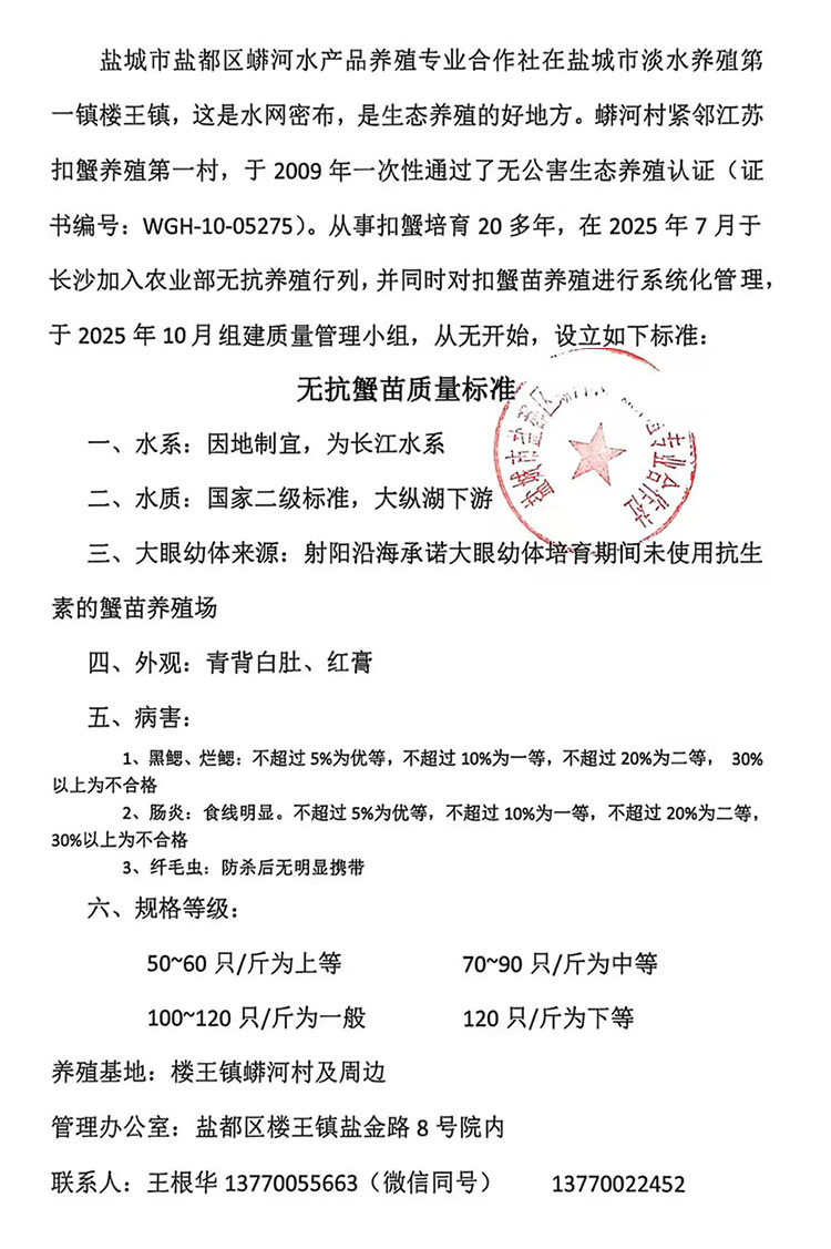 《“蟒蛇河”无抗蟹苗质量标准》